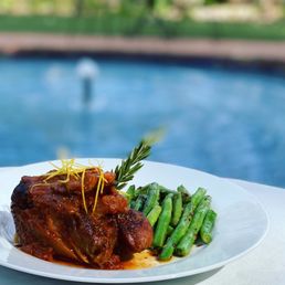 Such a beautiful and lightly fragrant treat to enjoy the shaded California sunshine under the Wisteria! We had the steak salad, seafood paella, and tortilla soup. Everything was served elegantly and deliciously tasty. Service was prompt and friendly.